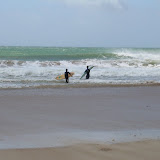 Postanowiliśmy z Marcusem wybrać się do Jeffreys Bay (J-Bay) zobaczyć co ciekawego dziś można tam "spotkać". Dokładniej chodziło nam o Kite Surferów, ale wiatr okazał się zbyt mocny nawet dla profesjonalistów (9 w skali Beauforta wiało, czyli jakieś 75 km/h). Jedynie kilku co bardziej śmiałych "klasycznych" surferów udało nam się spotkać :-)